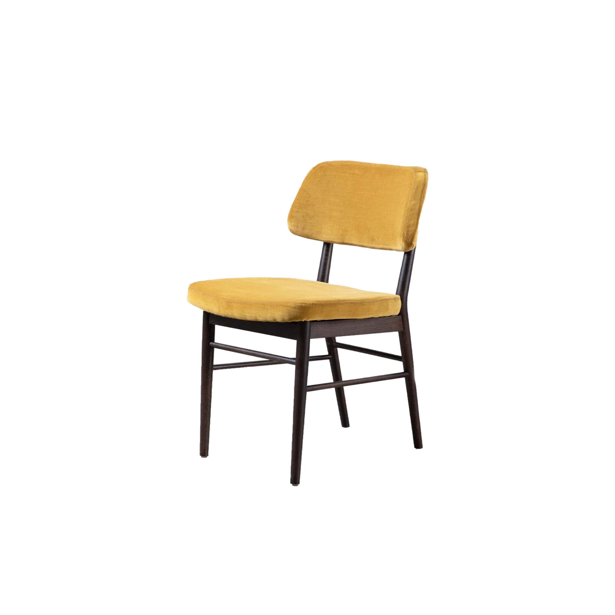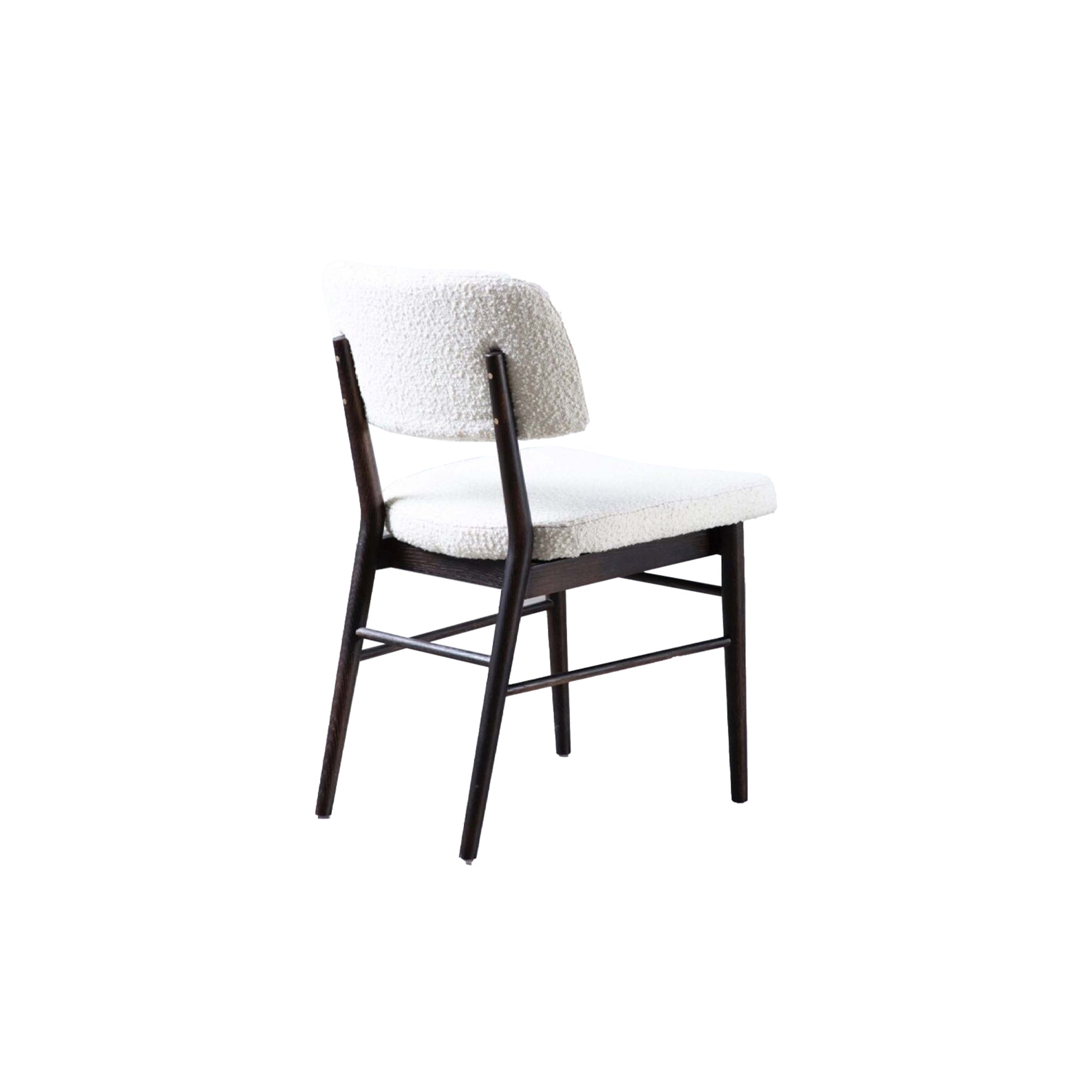A contemporary Scandinavian style dining chair featuring a curved padded back and seat perfect for long lunches and evening meals.