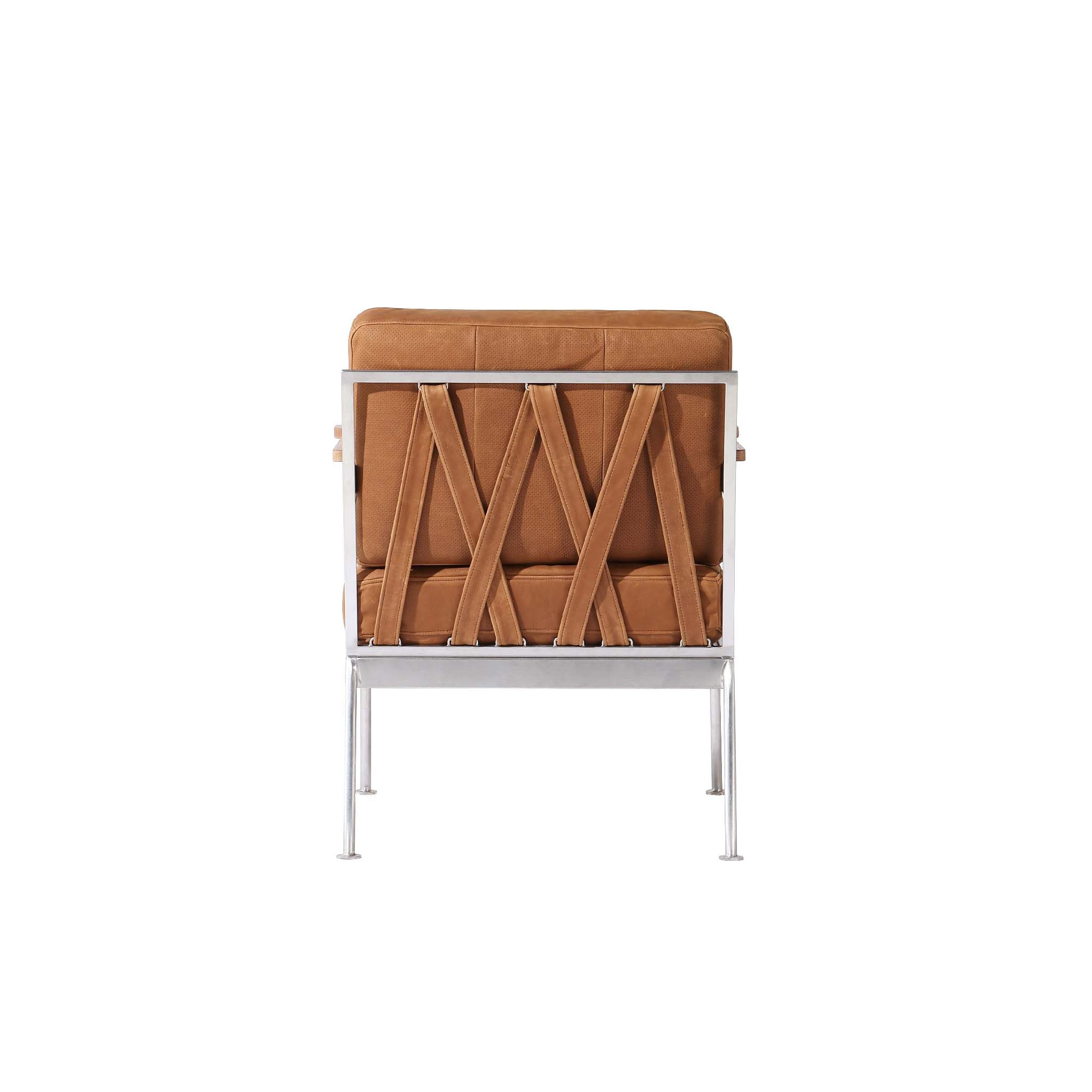 Seat Cushion Top Butter Cocoa Brown Leather, Under Black Canvas, Seat Straps Black Canvas, Whole Back Cushion Butter Cocoa Brown Leather, Back Straps Cocoa Brown Leather, Wood Armrest Smoky Brown, Brushed Stainless Steel Metal Frame Detail : Hard Material: Brushed Stainless Steel Metal Wood Armrest Smoky Brown Soft Material: Butter Cocoa Brown Leather, Black Canvas,