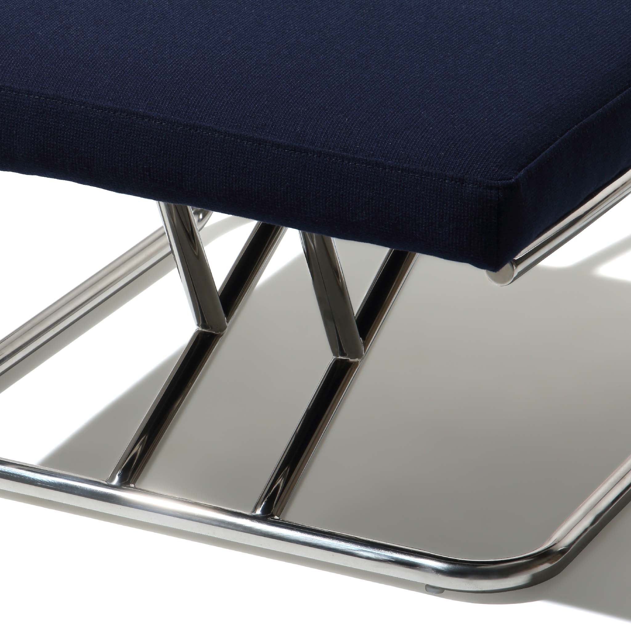 Finishing : Fabric Cushion with Polished Stainless Steel Metal Frame Detail : Hard Material: Polished Stainless Steel Frame Soft Material: Santa Monica Smooth Black Fabric