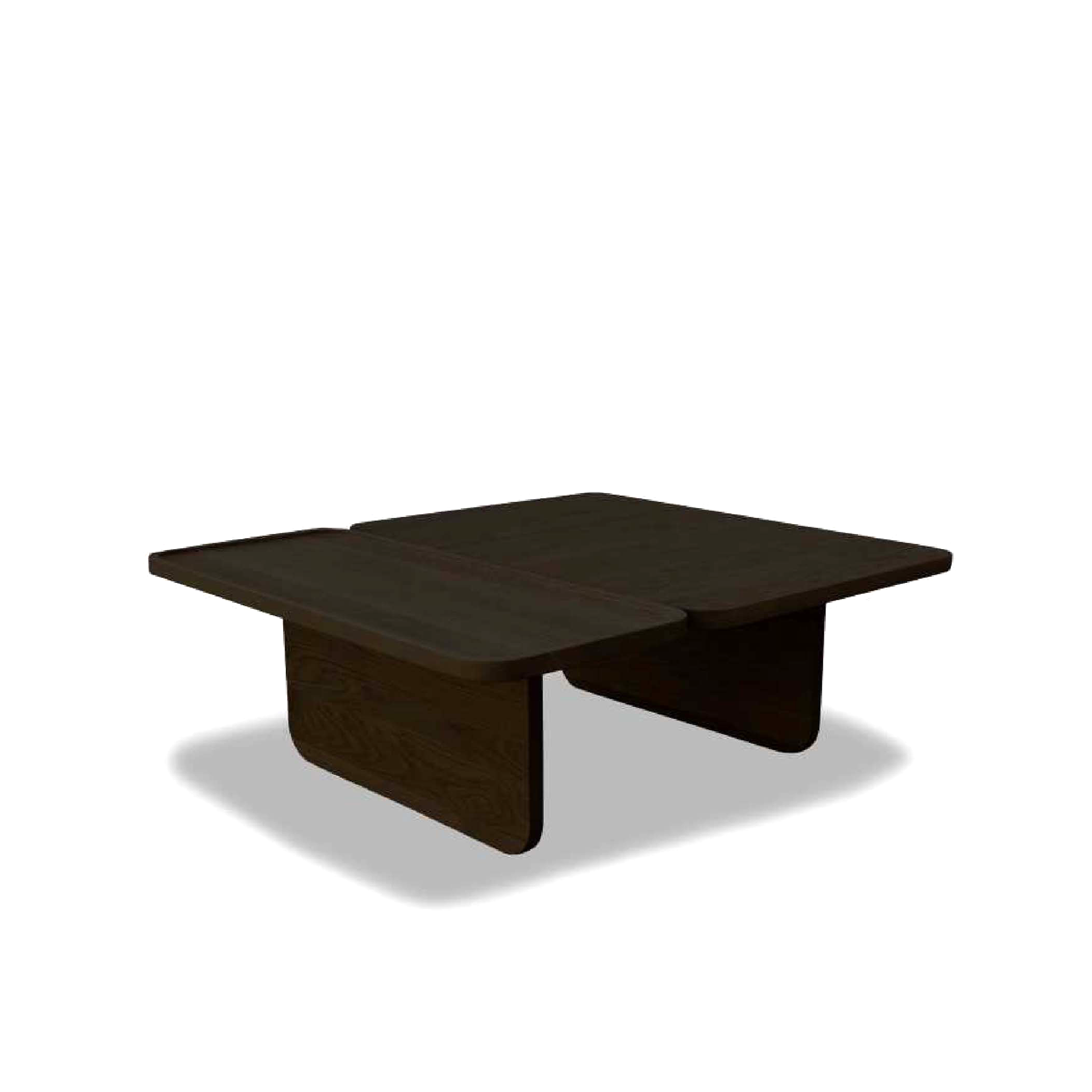 Duo is a coffee table family that combines not only two different materials but also two delimited areas for different purposes. The simple carved out gentle lip detail creates a tray-like space making it a safer place for smaller objects whilst the larger table top remains plain. The two tops are connected together with horizontal oak stretchers enclosed by the vertical wooden planes. The larger top can be either marble or solid oak