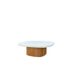 The ribbed wooden structure of the base of Gion table is inspired by an architectural feature of tea-houses found in the streets of Gion in Kyoto. The ordered arrangement of wooden ribs contrasts nicely with the more random arrangement of stones which comprise the terrazzo top.