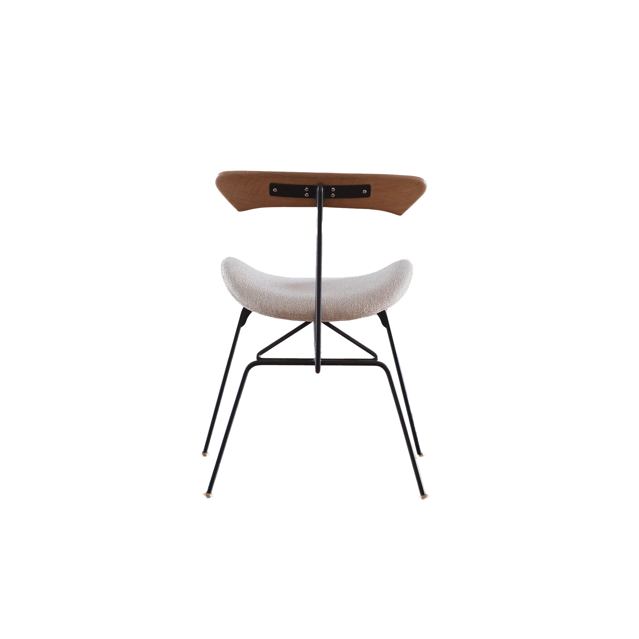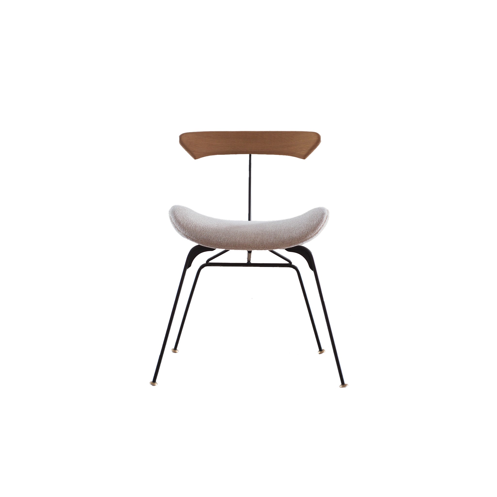 A contemporary Scandinavian style dining chair featuring a curved padded back and seat perfect for long lunches and evening meals.