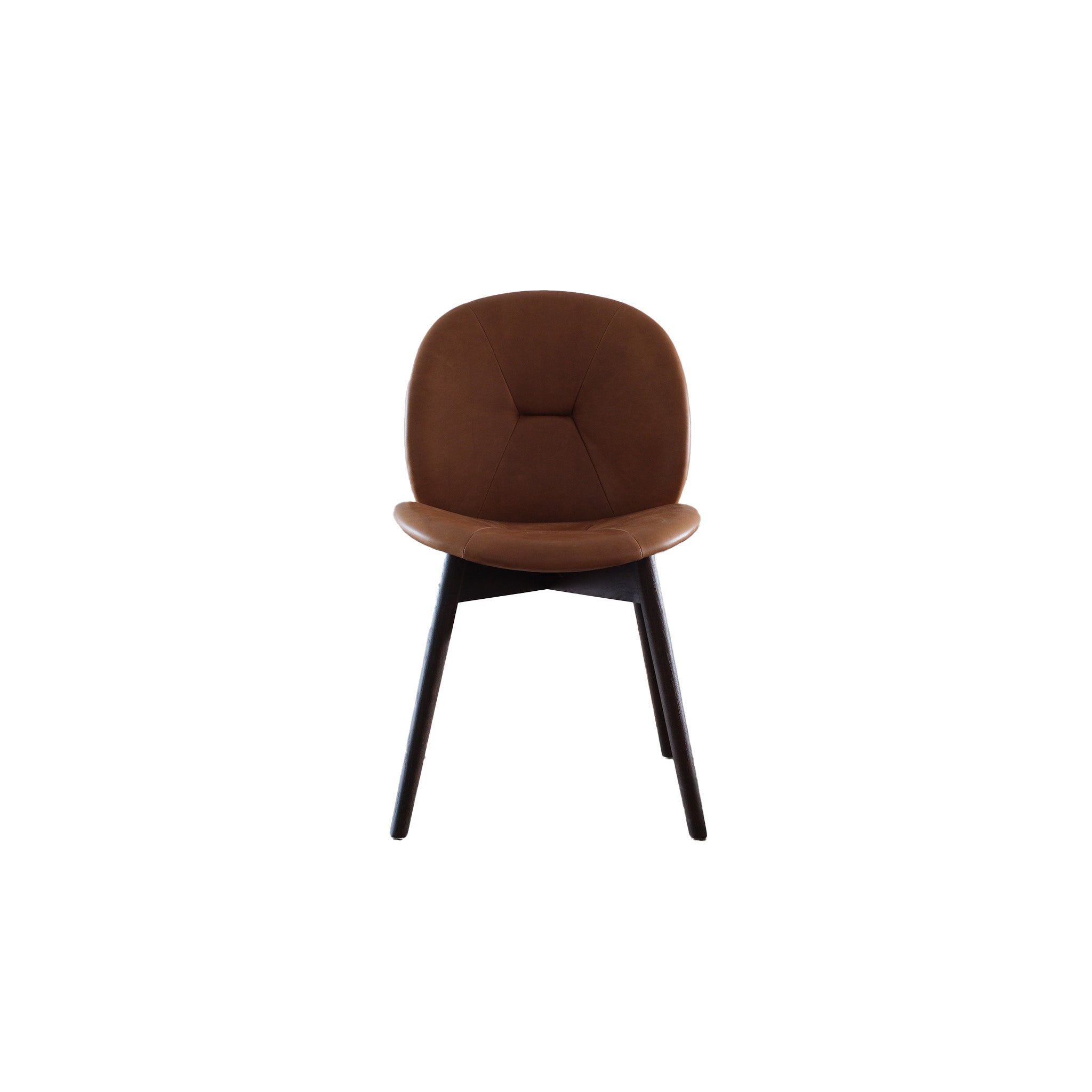 A contemporary Scandinavian style dining chair featuring a curved padded back and seat perfect for long lunches and evening meals.