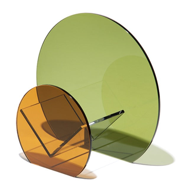 Front Panel in Green Acrylic, Back Panel in Brown Acrylic, Middle Holder in Transparent Acrylic.