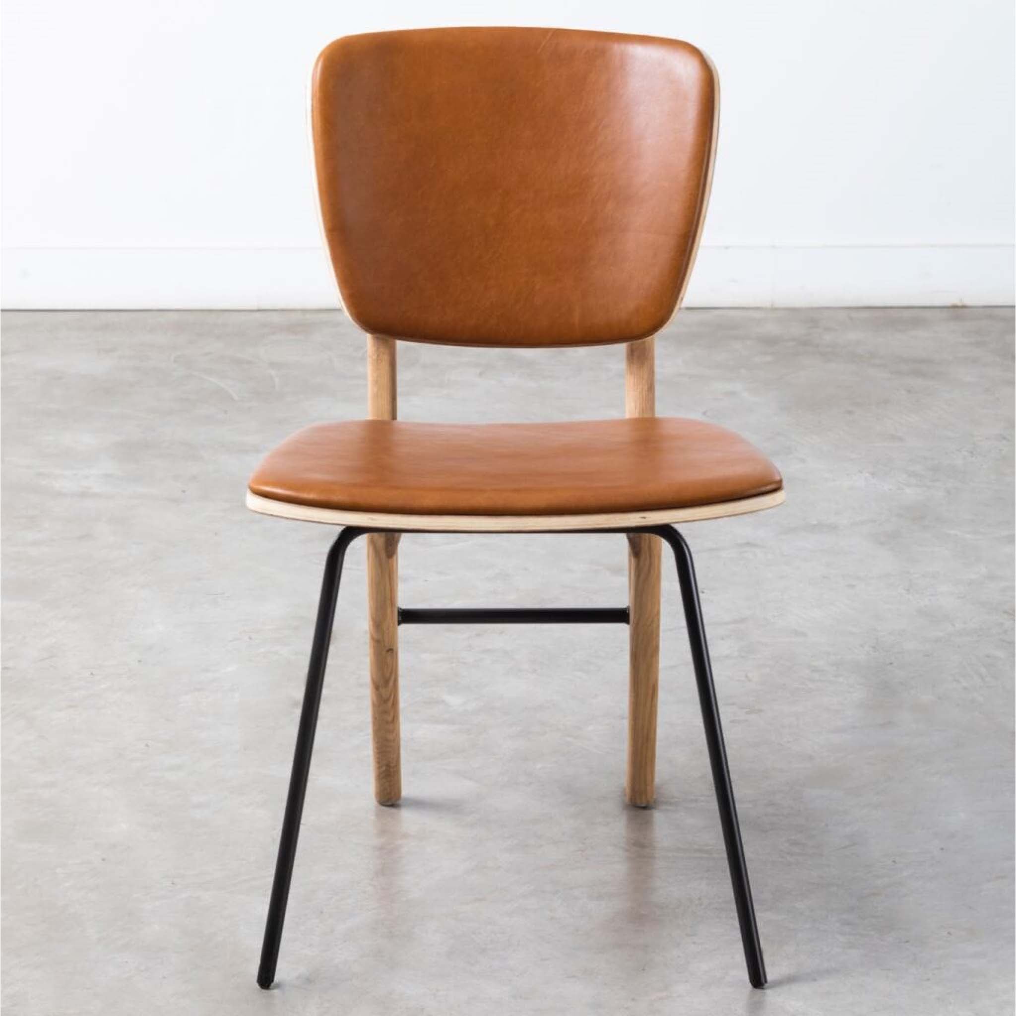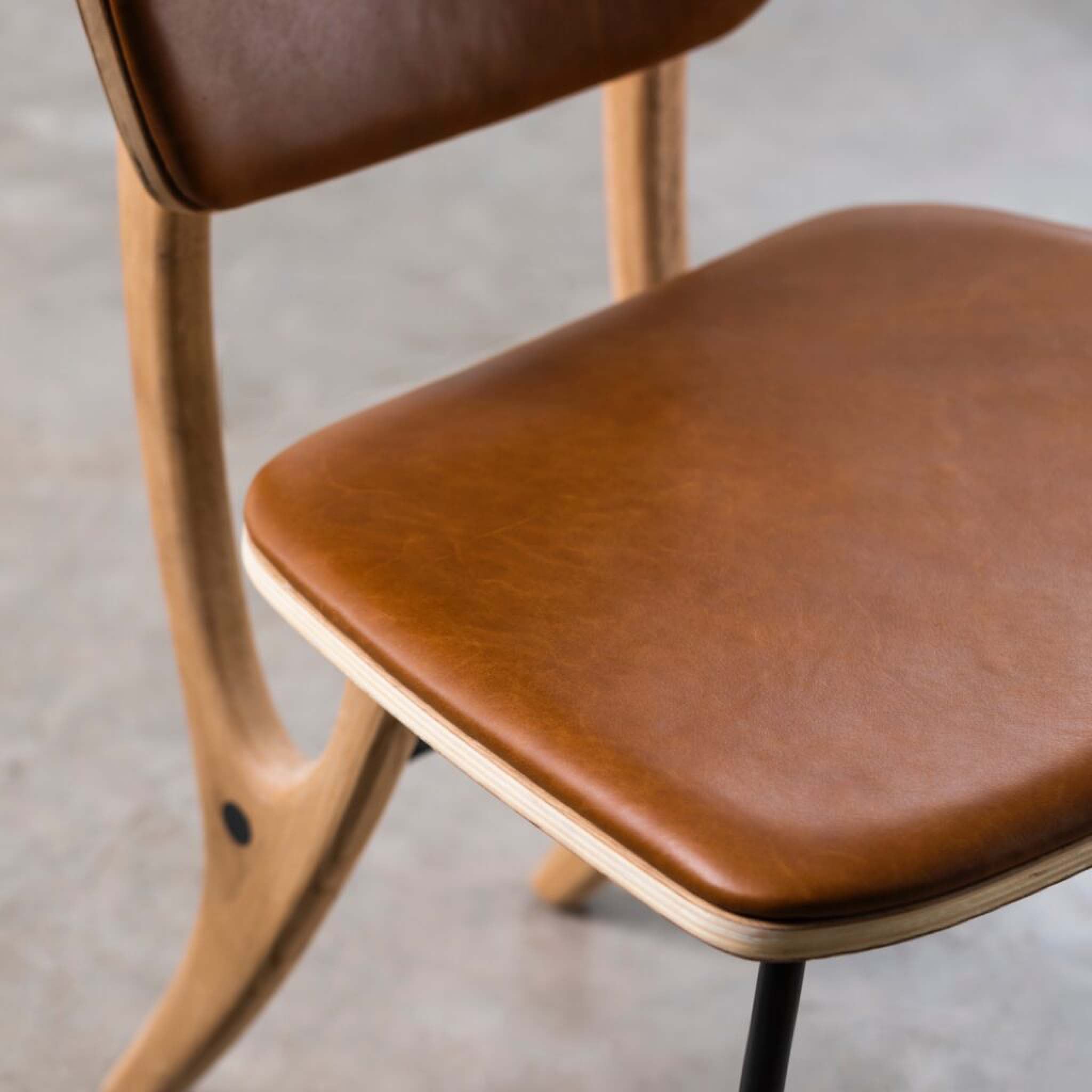 A contemporary Scandinavian style dining chair featuring a curved padded back and seat perfect for long lunches and evening meals.