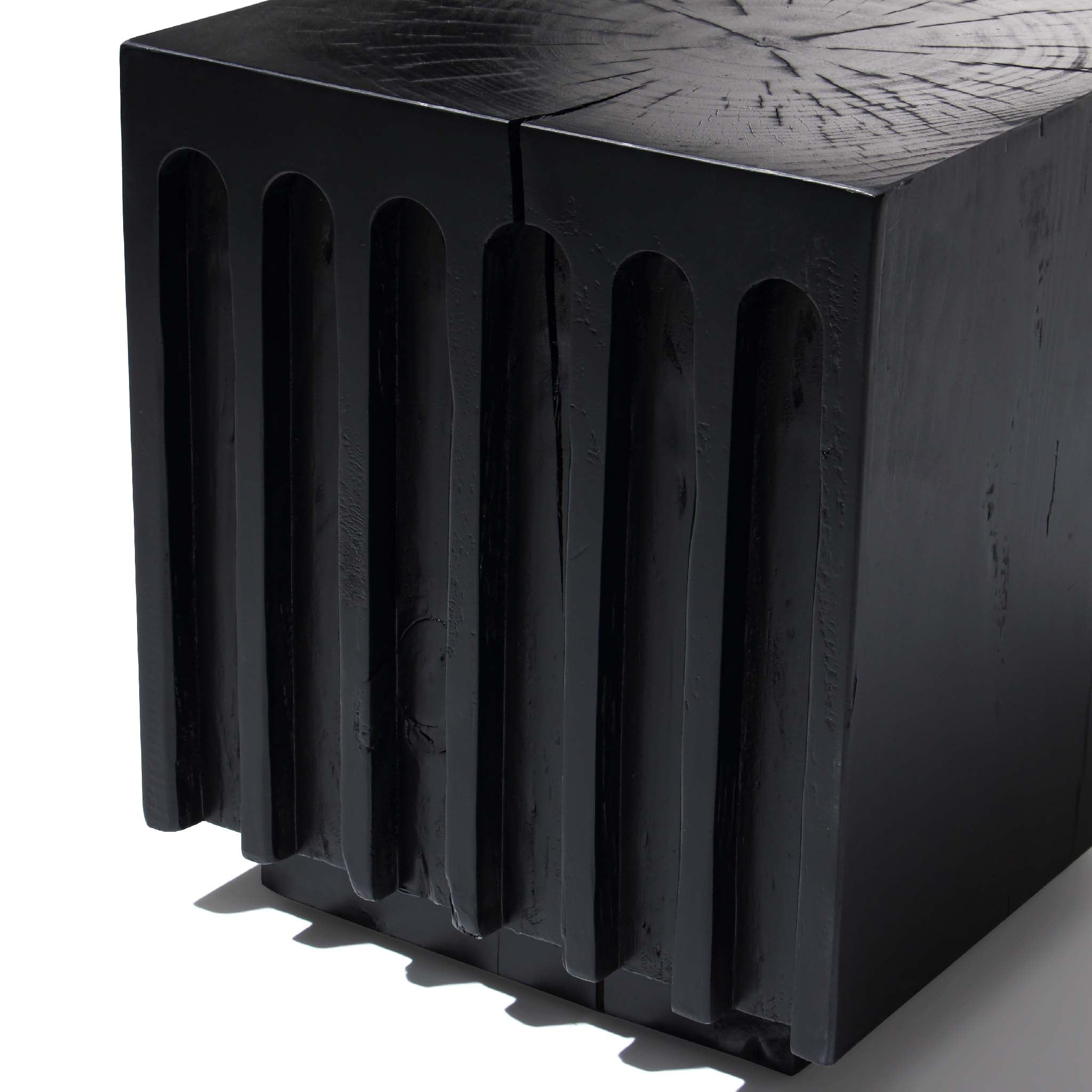 Finishing : New Zealand Pine Wood Square Side Table,Whole Body in Black Color Detail : Hard Material: New Zealand Pine Wood