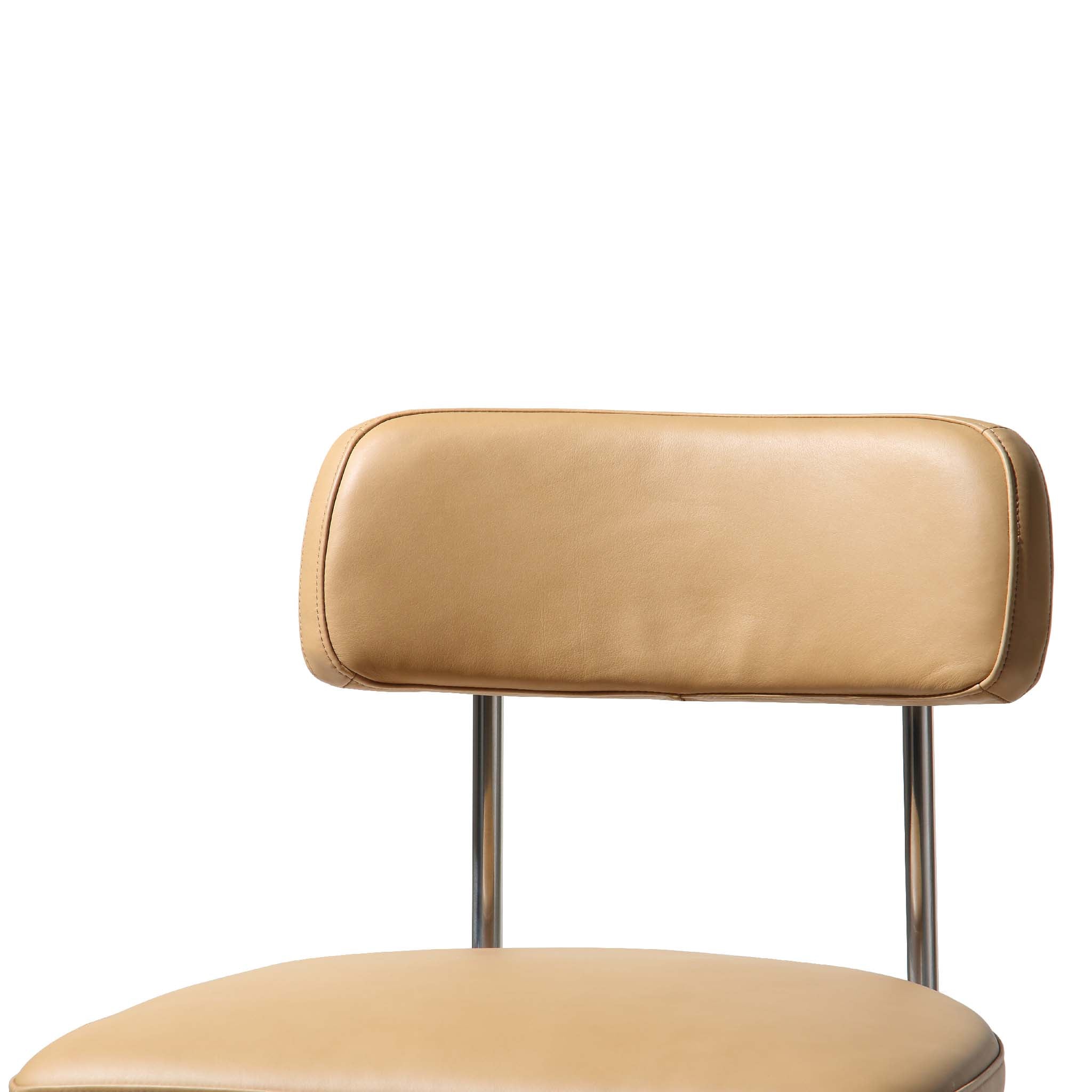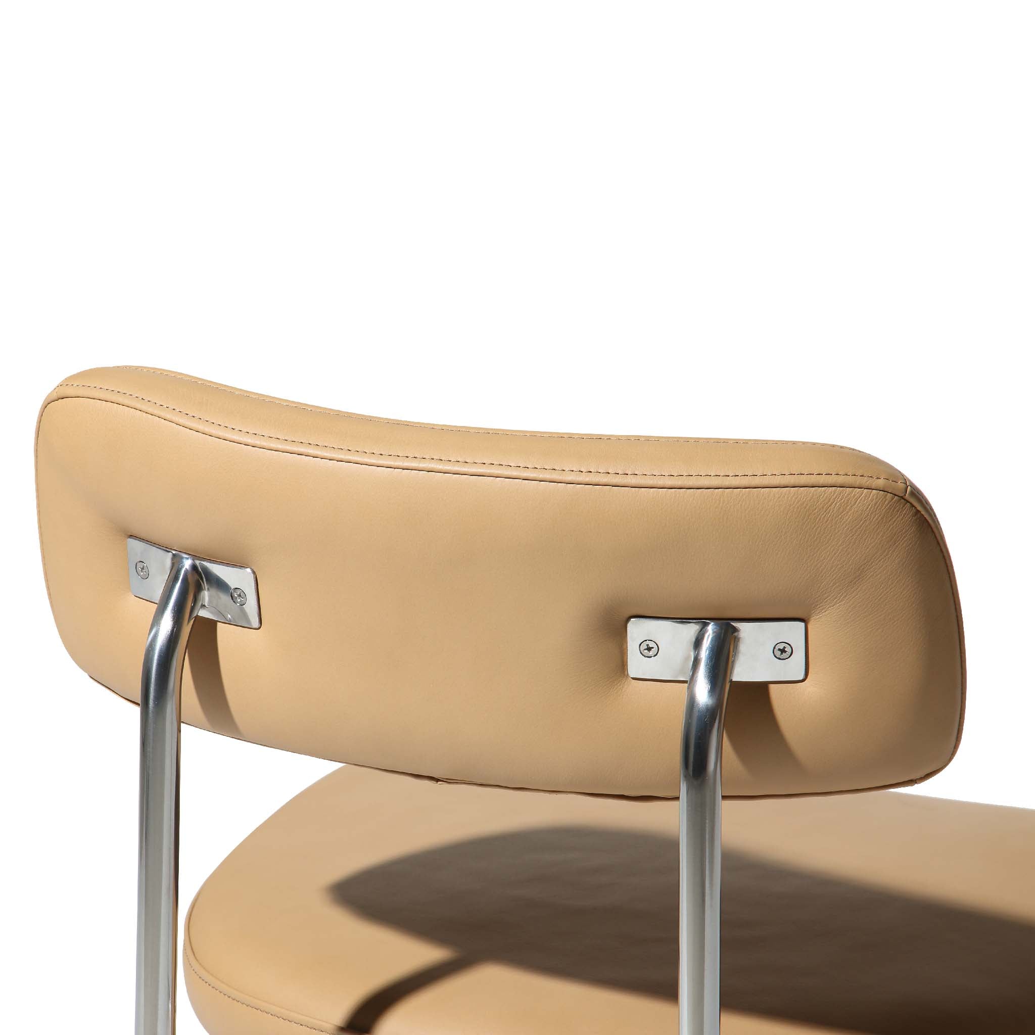 Hard Material: Polished Stainless Steel Frame Soft Material: Modern Hazelnut Leather